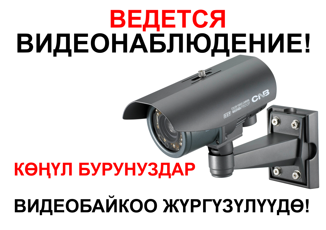 Теги: Внимание ведётся видеонаблюдение. На кыргызском языке. Табличка формат А4 . Ведется видео наблюдение..