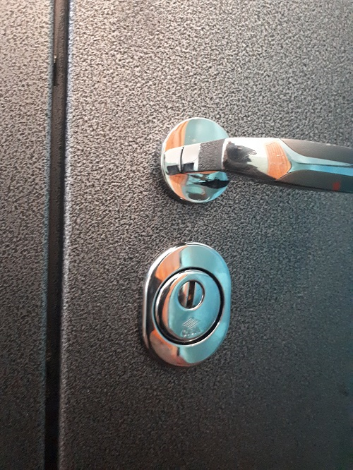 Но в нашем случае броненакладка итальянского производителя Чиза, установлена на внешнее металлическое полотно двери, крепится двумя винтами м5.